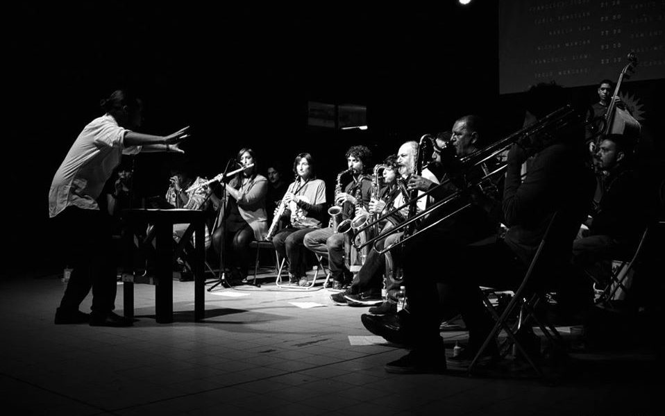 La conduction a livello di concetto è facile e si può basare sulle capacità di ogni strumentista. In questo senso è una pratica sociale. Poi bisogna dire che alla conduction si interessano persone che hanno una predesposizione alle pratiche sociali. Mi spiego meglio. Ci sono musicisti troppo anarcici, il cui carattere o la propria individualità è troppo grande per lavorare in grande gruppo. Al massimo possono essere dei solisti accompagnati da un gruppo. Anche loro possono essere condotti ovviamente, ma soffrono. Mi è capitato. Mentre chi si orienta stabilmente sulla conduction trova il suo spazio nella socialità, nel far parte di un collettivo, cosa che succede spesso anche nell’improvvisazione. Quando conduco comunque io voglio che il gruppo si comporti come una società ideale, dove tutti sono allo stesso livello (anche se non tutti sono bravi), voglio che tutti abbiano uno spazio creativo o solistico, voglio che nessuno sia aggressivo con gli altri. Ci tengo molto che ci sia un’atmosfera familiare. Se con pratica sociale intendi che ha influenza sulla società al di fuori della musica credo che ogni nostra azione ne abbia. Ho introdotto alla conduction decine di musicisti e alcuni di loro oggi sono improvvisatori. Ho cambiato il loro modo di vedere la musica, come musicsiti prima di me lo hanno fatto con me. Per molti è il ponte verso una libertà estrema nella musica, capiscono che si può fare tutto. Capiscono che si può essere creativi. Capiscono che si può essere liberi con gli altri. E questa è una lezione che tutti possono imparare.
